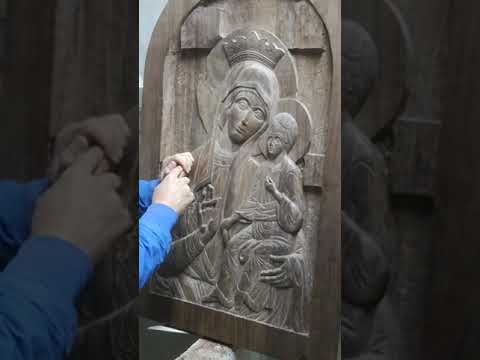 Χειροποίητη ξυλόγλυπτη εικόνα, Παναγία η Γλυκοφιλουσα, με τεχνική παλαίωσης, 20Χ25εκ, σκαλισμένη σε ξύλο Οξιάς. Διατίθεται.